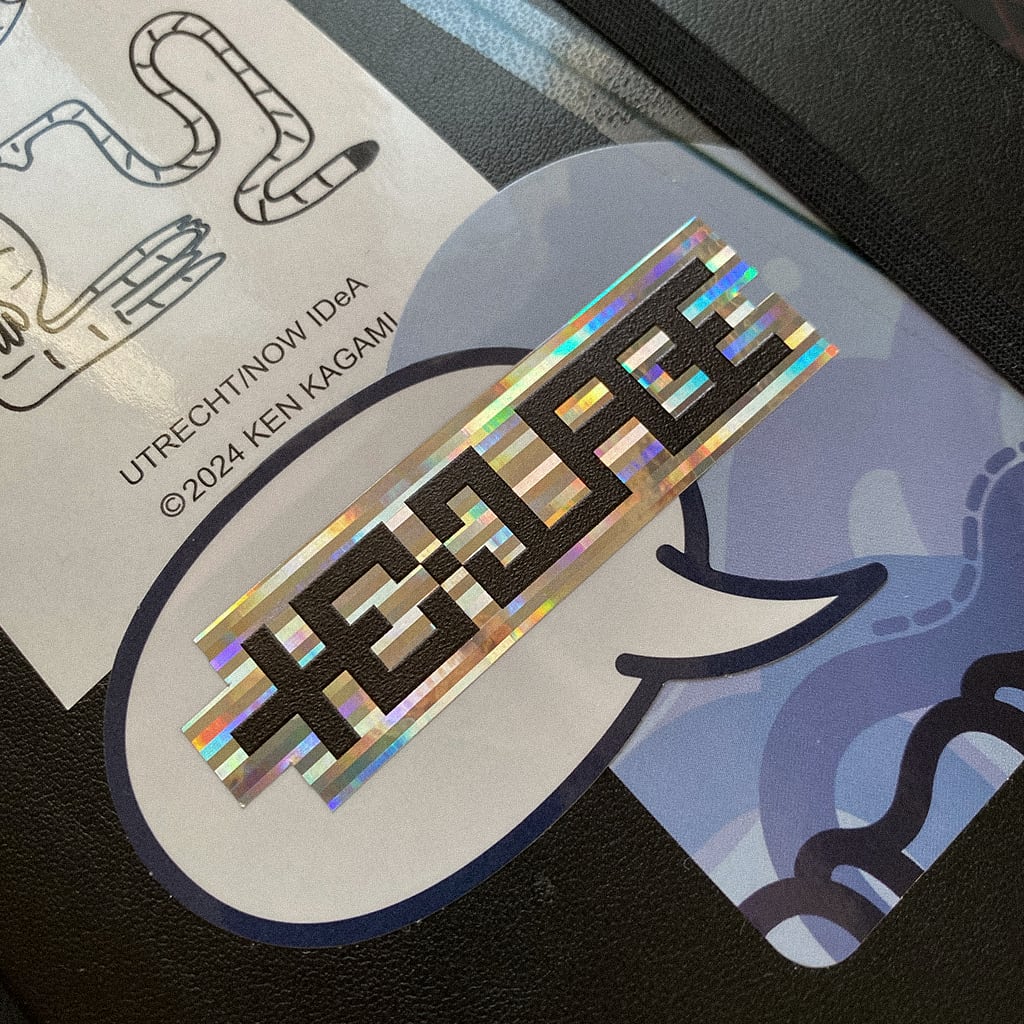 様々なテクスチャーとコラージュを組み合わせる行為と、グリッチの表現がマッチしたステッカーです。